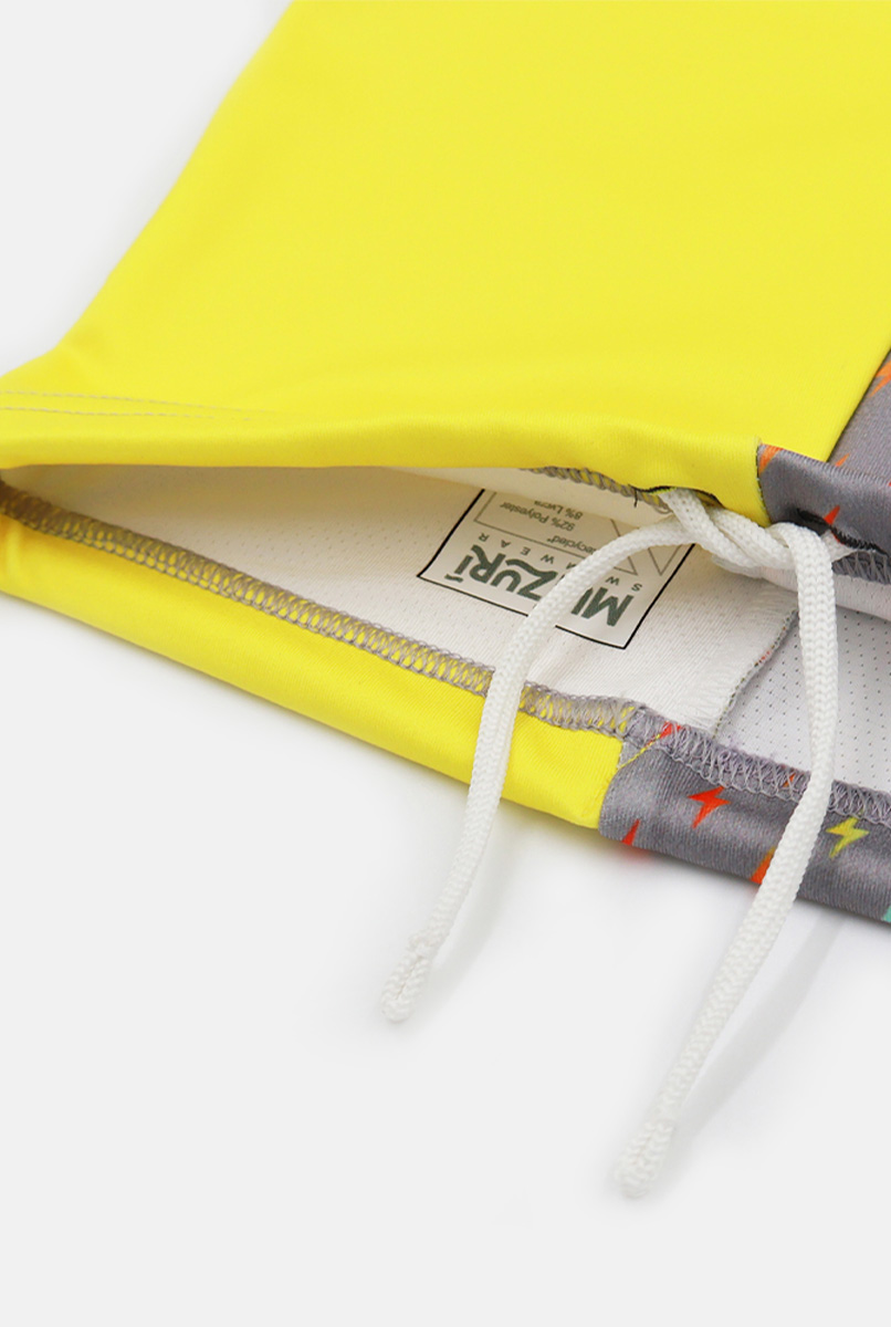 A matching set that gives versatility and convenience of having two styles of jammers a short and long length jammer and a long-sleeve rash tee. Designed with safety in mind, The Signal—our signature, reversible tee with its vibrant, one-of-a-kind ‘life-saver’ sleeve—makes it easy to spot your little one from afar. Because every adventure should come with peace of mind.